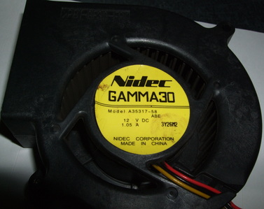 Some Supermicro systems I work on recently starting having very noisy fans. The systems are Supermicro 1U 6013P-8 servers. They each have two squirrel cage fans. The fan has Supermicro labels that read "fan-0066" and "672042610488". The OEM label on the fan reads "Nidec GAMMA30 Model A35317-58 ABE 12 V DC 1.05 A 3Y26M2 NIDEC CORPORATION MADE IN CHINA". Here's a picture